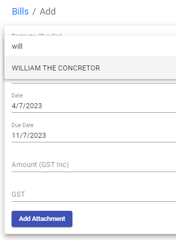To create a Payment Claim, the invoices for the trades and suppliers, and the builder need to be entered as a Bill to be added to the Claim schedule.