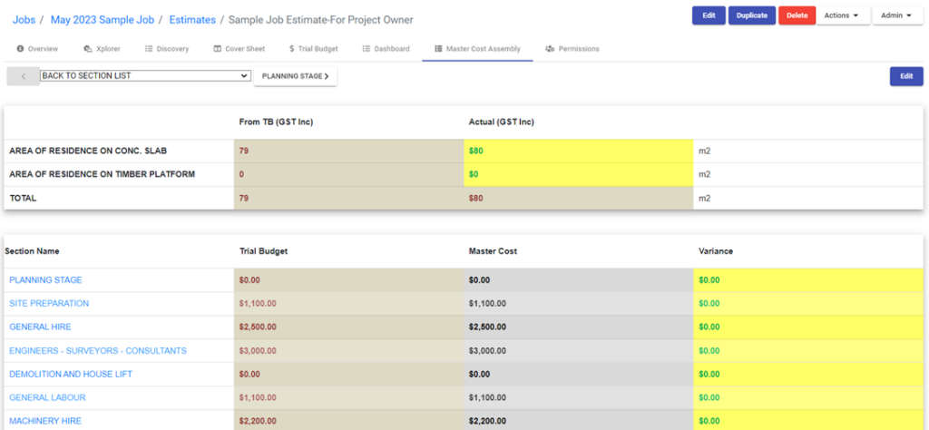 When you have completed a Discovery, you can view the Master Cost Assembly and go over the cost allocations to each Trade Area to assess the costs. This is how you can do a final check of the Discovery before presenting to the Project Owner, ensuring that you are satisfied with the costs and the overall estimate outcome.