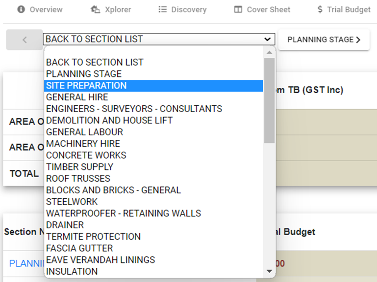 To access each Trade Code, click on the dropdown to select the section you wish to navigate to. Alternatively, you can click on the navigation arrows to the left or right, to take you to the next or previous page.