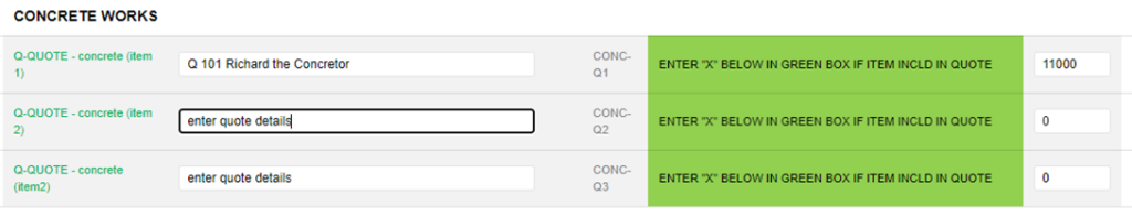 If you have a quote from a trade or supplier, you add the quote details at the top green section.