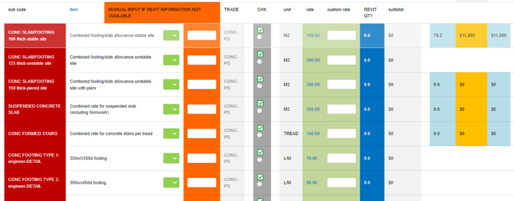 The following is an overview of the elements of the Trade Area for Concrete Works. Most Trade Areas are set up the same, however some may vary, depending on the detail of the Trade Area.