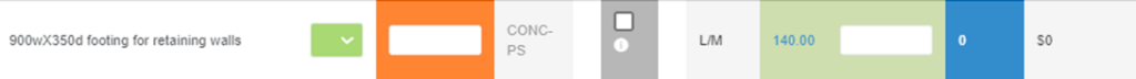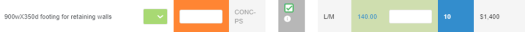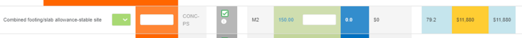 You will note there are cells to the right. These cells are showing data from the Discovery, so for the Concrete Works example, this is the area of concrete slab in the project based on the rooms added in the Discovery.