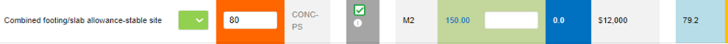 To add this concrete slab area to the MCA to start building up the price, you add the area as shown in the blue cell to the orange cell. Then the allowance will show.