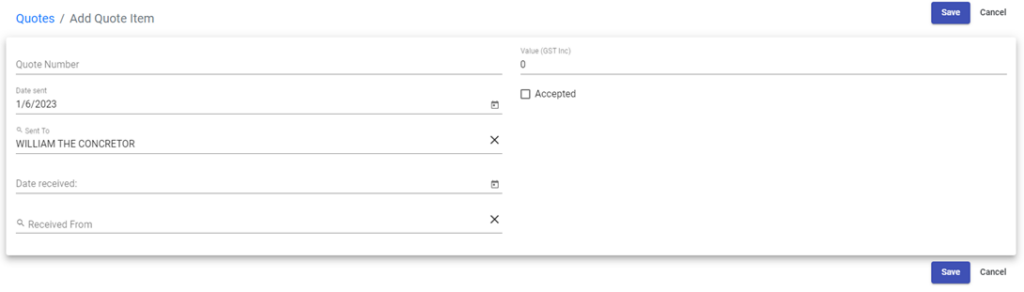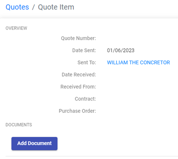 Quotes is where you manage the quote requests to the trades and suppliers. It is a tracking component where you can also store the quotes as they come back to you. Delivery of the quote requests are done via your third party email provider, or however you normally communicate with your trades and suppliers.