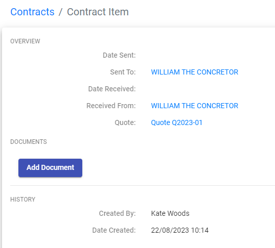 NOTE: Contracts module purpose is to provide a visual tracking tool for the quotes for the project. There is no feature for communication to trades and suppliers from the Quotes module.